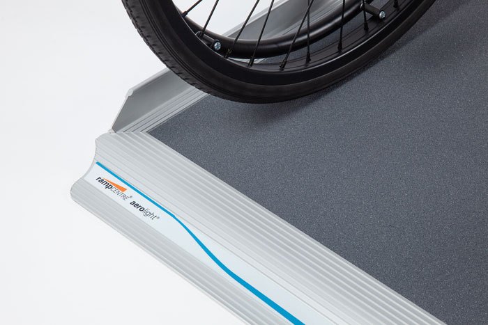 The Aerolight Classic Wheelchair ramp is available in 2ft, 3ft, 4ft and 5ft. This portable mobility ramp simply rests on the step, kerb and doorway. The British made access ramp offers an anti-slip surface and safety edges. The rest on connection has a grip surface for optimum grip to the step or kerb during use. Provided with a 2-year warranty.