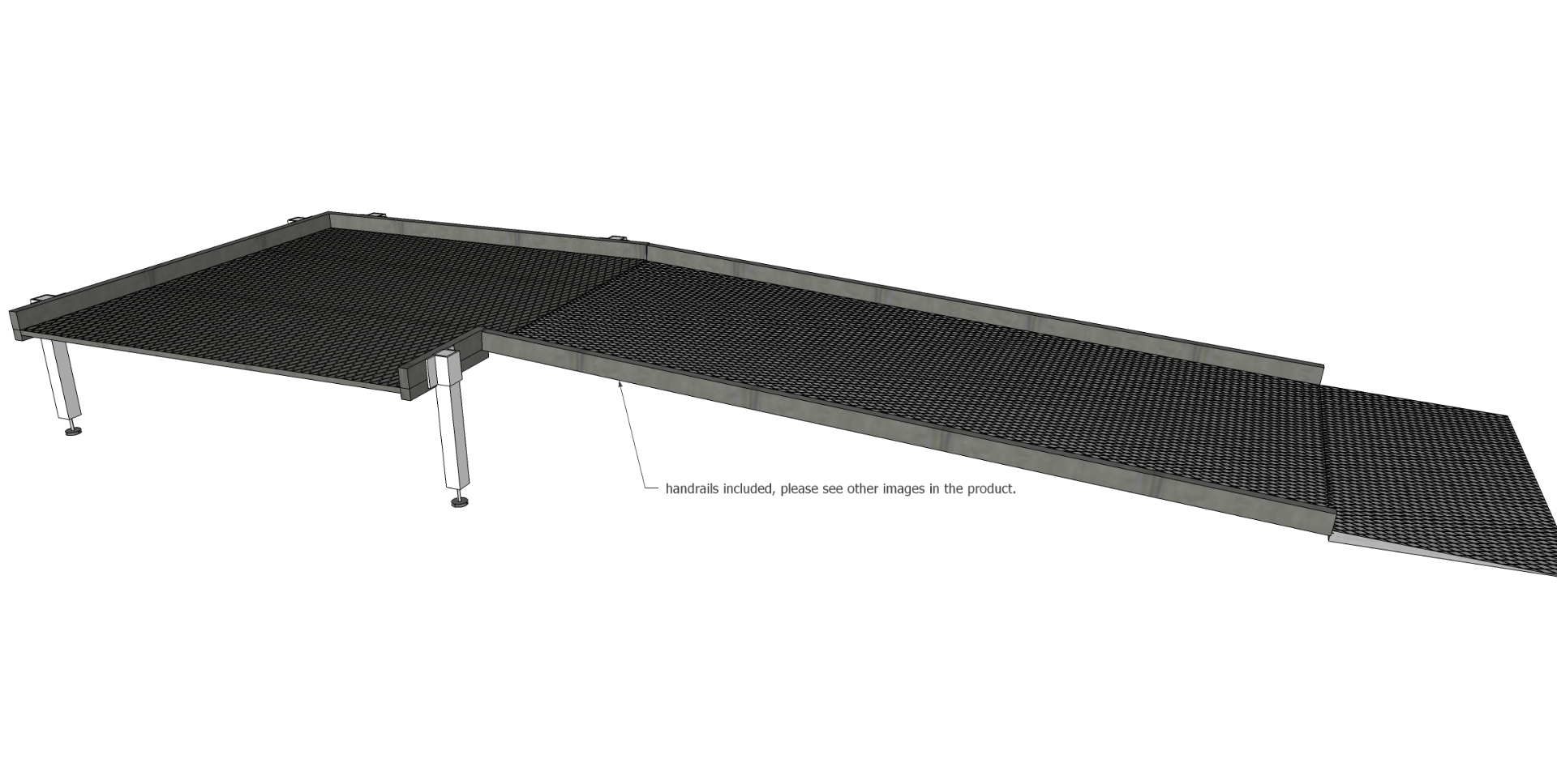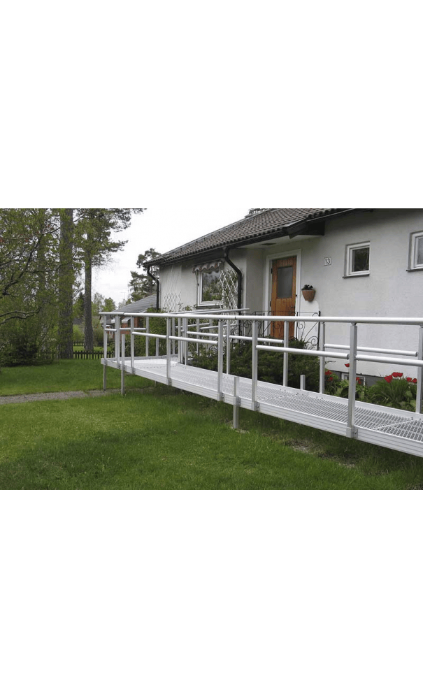 Modular Ramp Kit, 2500mm long, 1300mm wide, with double height handrails and mesh anti-slip surface.