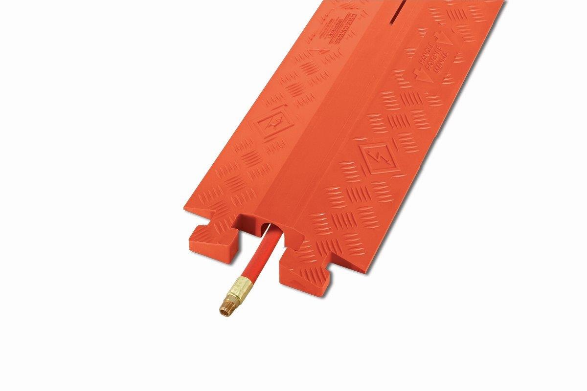 Linebacker's 1-Channel Drop Over Cable Protector is up to the task. Intended to protect cables and hoses with a diameter of up to 1.25", it's built of durable, all-weather polyurethane and features patented T-Connectors allowing it to extend to any length when combined with other Linebacker protectors. It's also designed to be lightweight, easy to store and easy to transport and setup. It's quick, it's effective and it's easy to use.