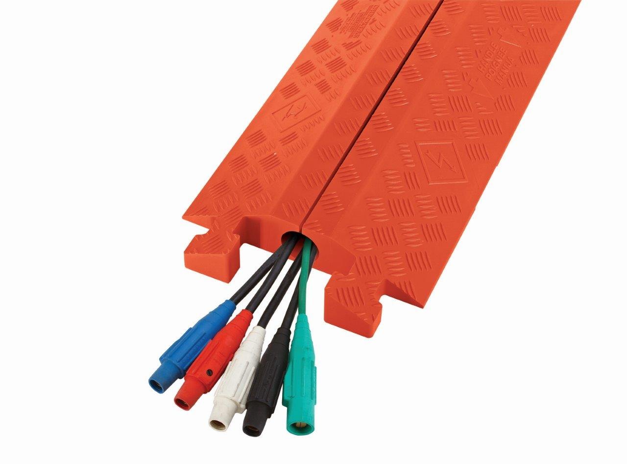 Built from all-weather polyurethane, the Linebacker 1-Channel Split Top Cable Protector is a quick, effective means of protecting single runs of cable or hose lines. With a lightweight, modular interlocking design and the capacity to extend to any length via patented T-Connectors, these protectors are suitable for both medium-duty, high load bearing operations and lighter, general-purpose use. This split top models load cables and hoses from the top, completely surrounding the cable or hose for protection.