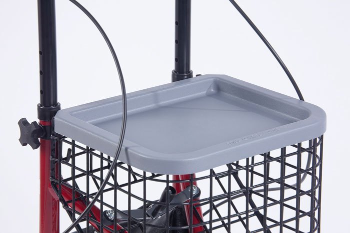 Aluminium 3-wheeled rollator with a basket, bag and tray by Drive DeVilbiss is designed for use inside and outdoors. The lightweight and folding rollator can easily be adjusted to your preferred height. The three-wheel design ensures users can manoeuvre the walker with ease. The bag and basket is perfect for storing goods whilst out and about, whilst the tray allows users to easily move items around the home, such as drinks from one room to another.