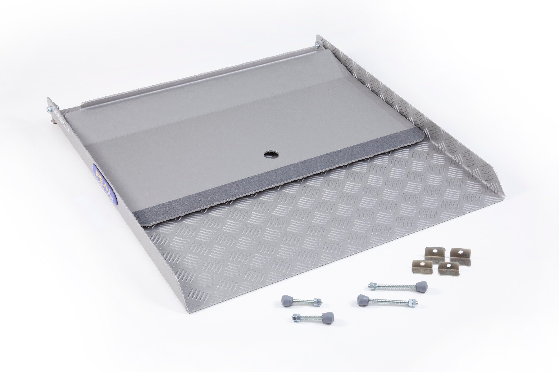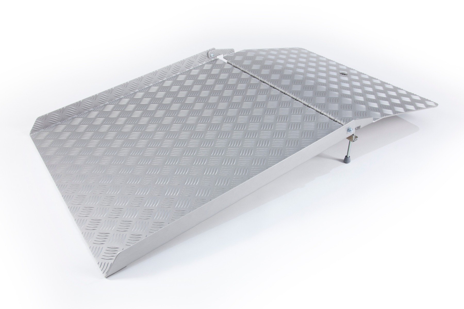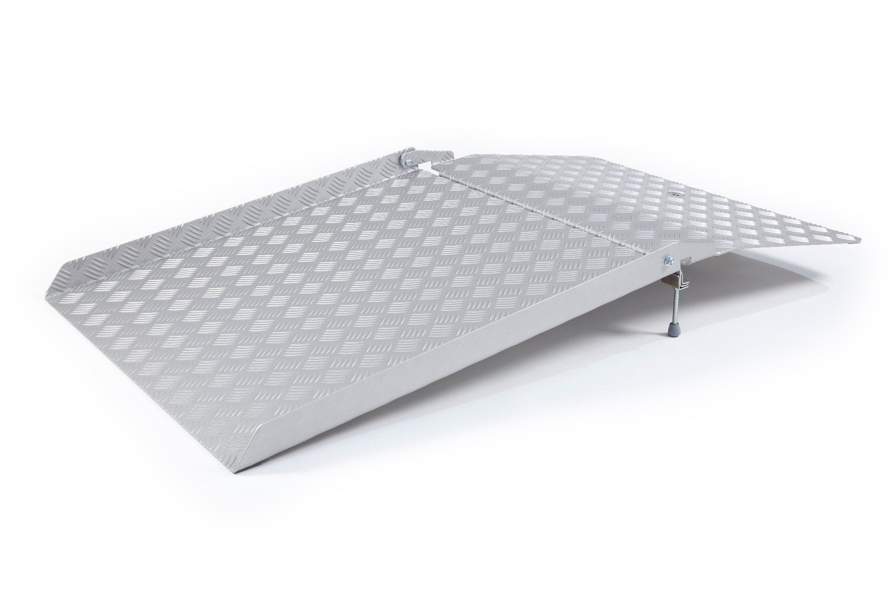 Made to be left in place, this two-part version of the drive-in ramp is provided and forms a bridge over door thresholds. A fold-up tail allows you to lose close the door when not in. The height of the ramp can be easily adjusted and adapted to the obstacle.