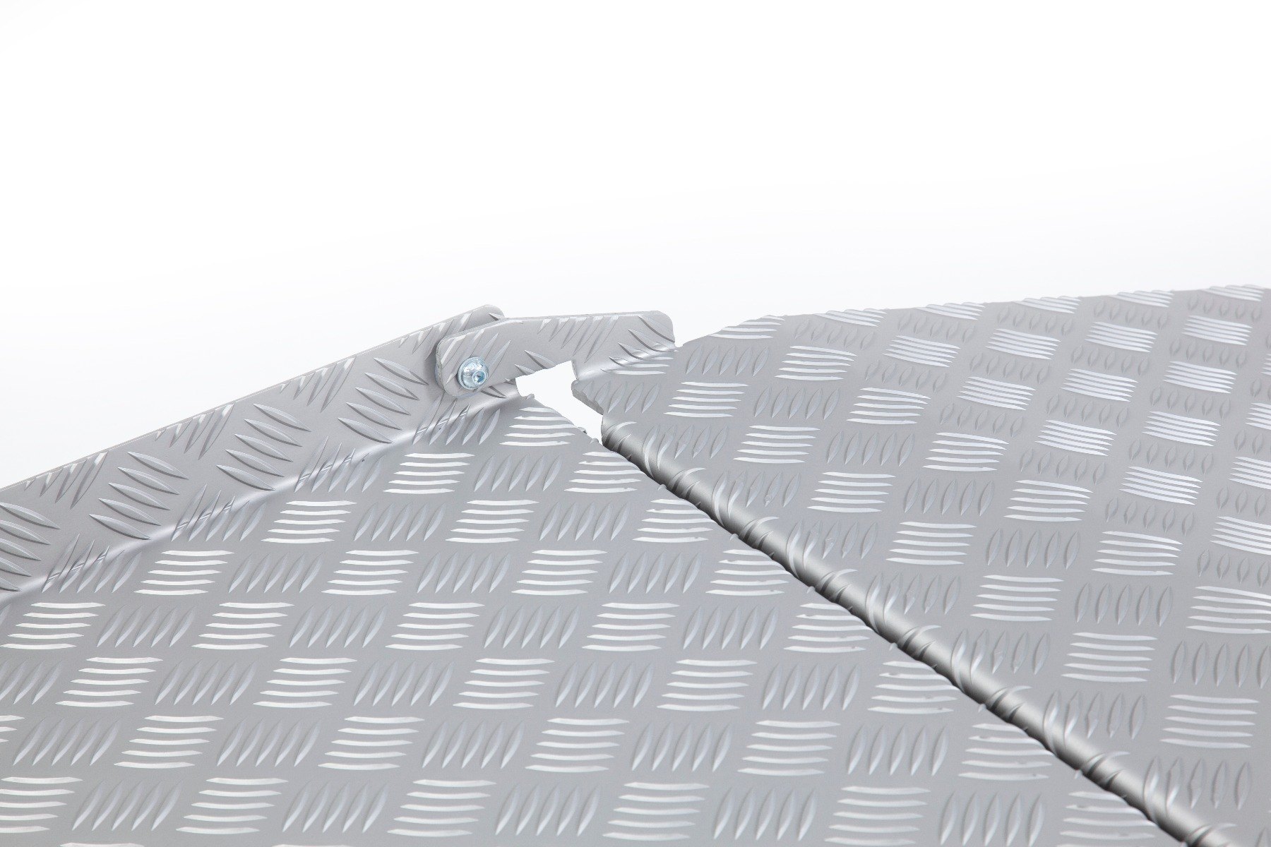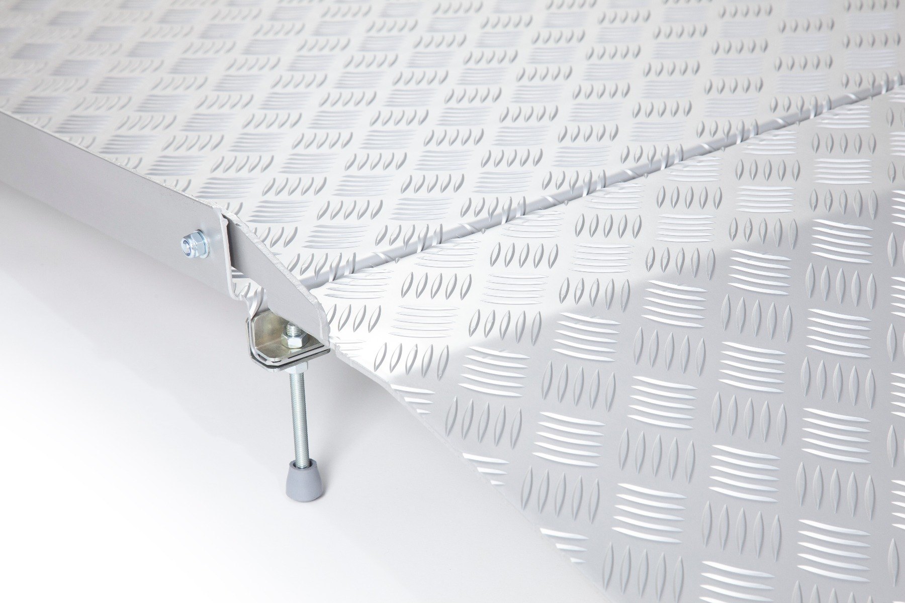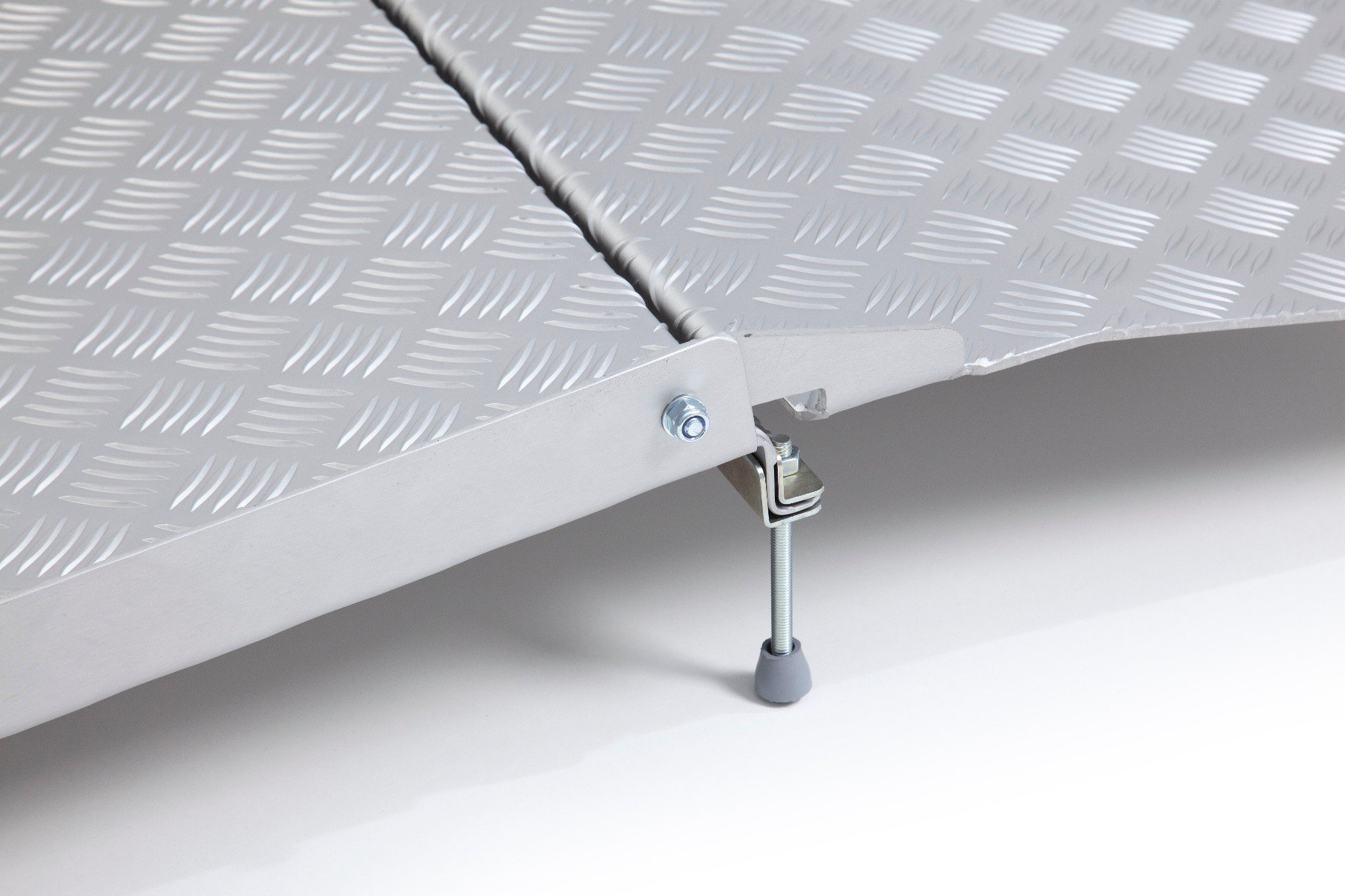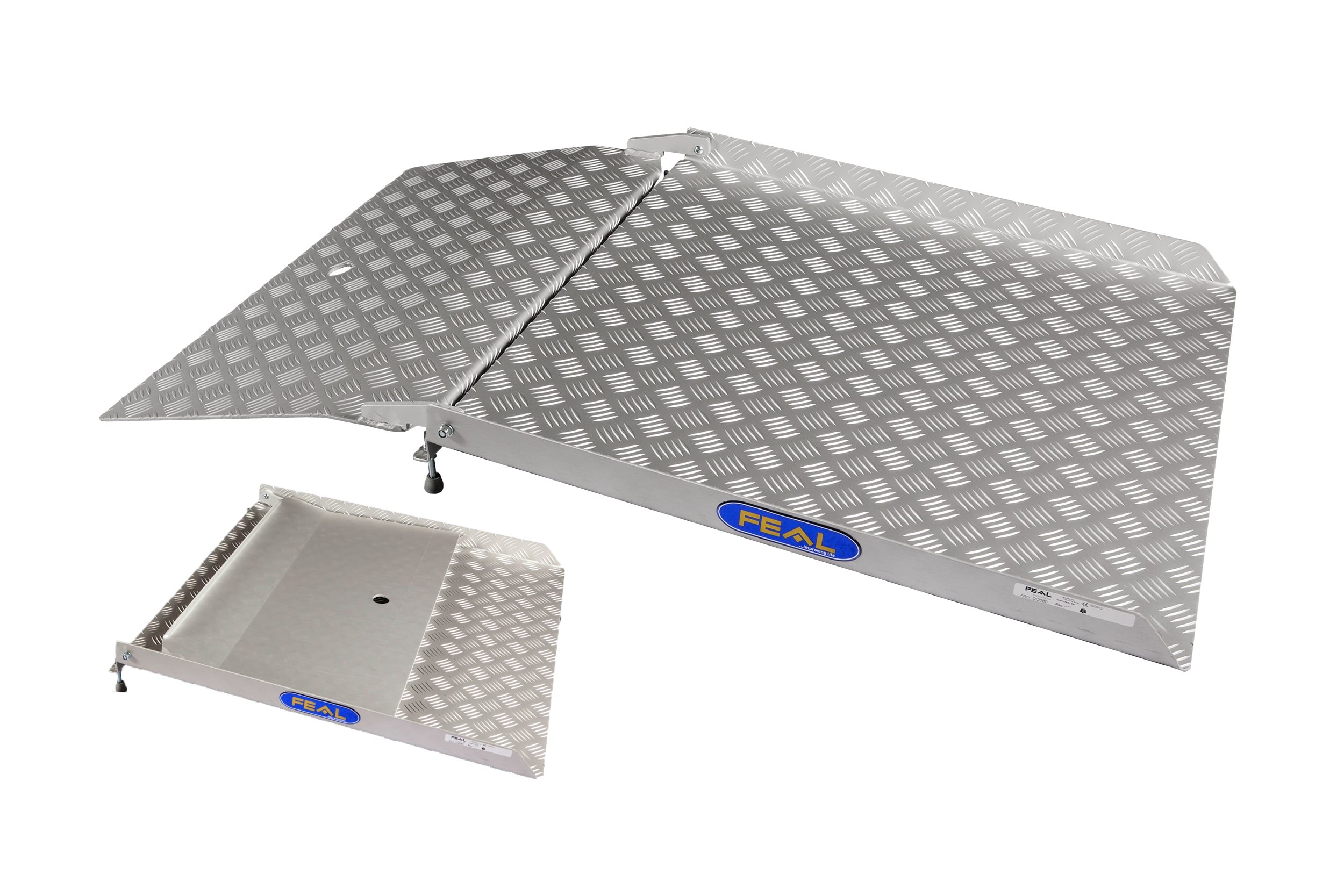 Made to be left in place, this two-part version of the drive-in ramp is provided and forms a bridge over door thresholds. A fold-up tail allows you to lose close the door when not in. The height of the ramp can be easily adjusted and adapted to the obstacle.