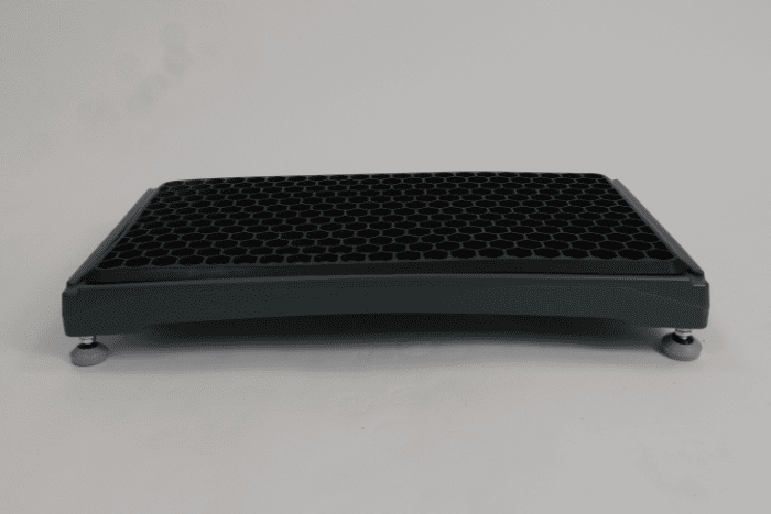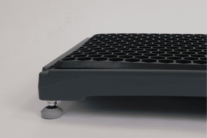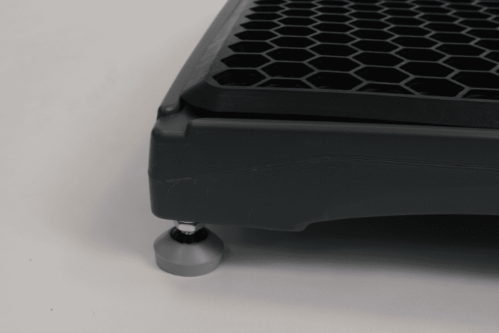 The feet can be slightly adjusted to ensure the step remains flush with the ground on uneven surfaces