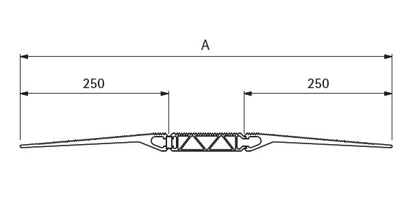 Total length is the figure for 'A' in the technical drawing on the left. The lips on both sides of the reinforced central section of the ramp are 250mm each as standard
