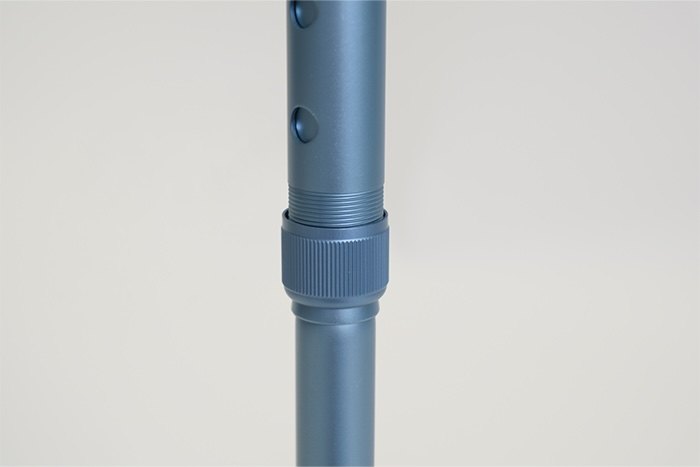 The walking stick can be adjusted to 8 different heights. Simply push in the metal locking button and slide the stick up or down to select your preferred height. Once it is at the desired height, the button pops out into a pre-drilled hole to lock it securely in place.