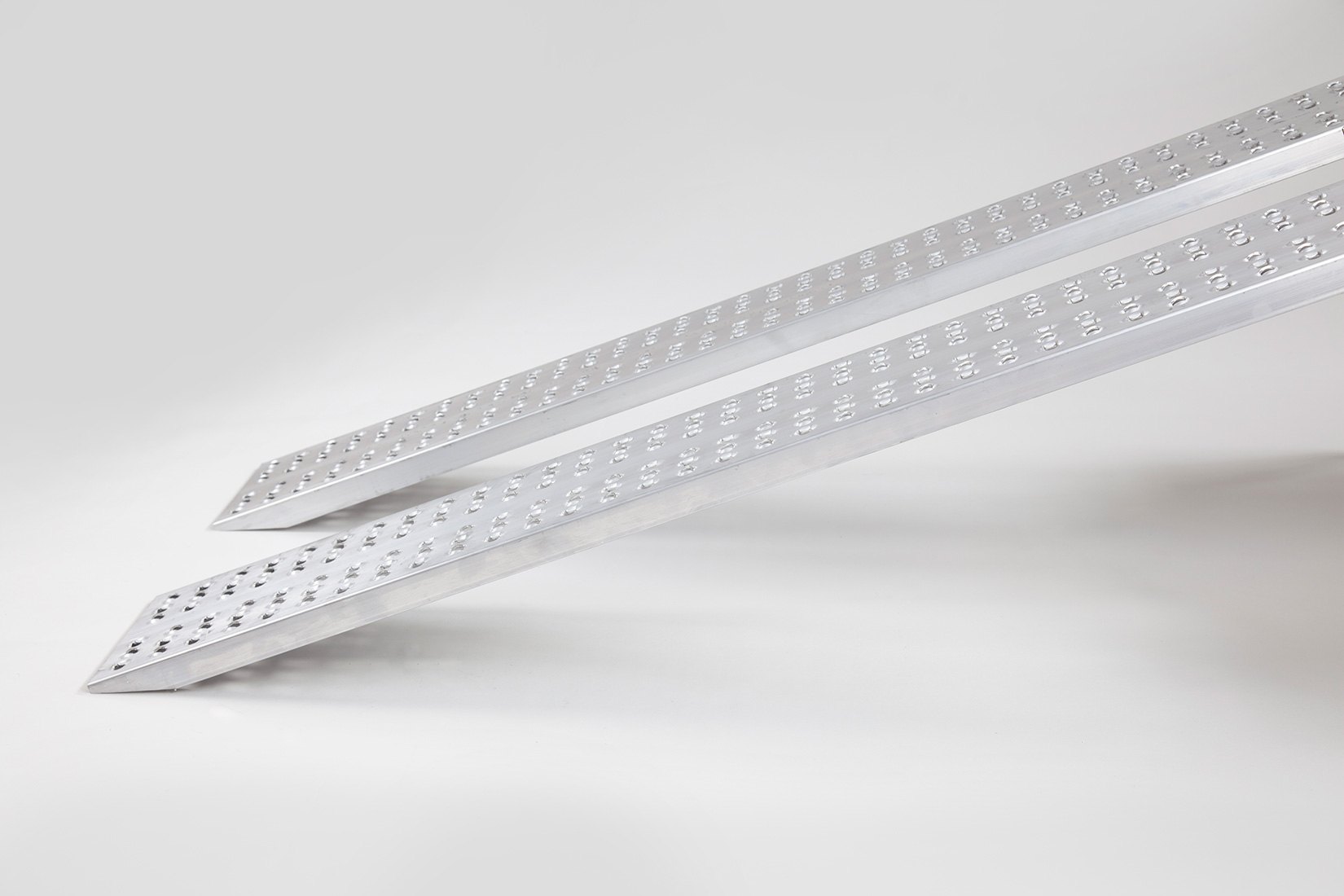 Pair of 1485mm long x 200mm wide, straight single piece aluminium ramps. Ideal for use at home when loading or moving machines that weigh up to 600kg. Price and capacity stated is for the PAIR.