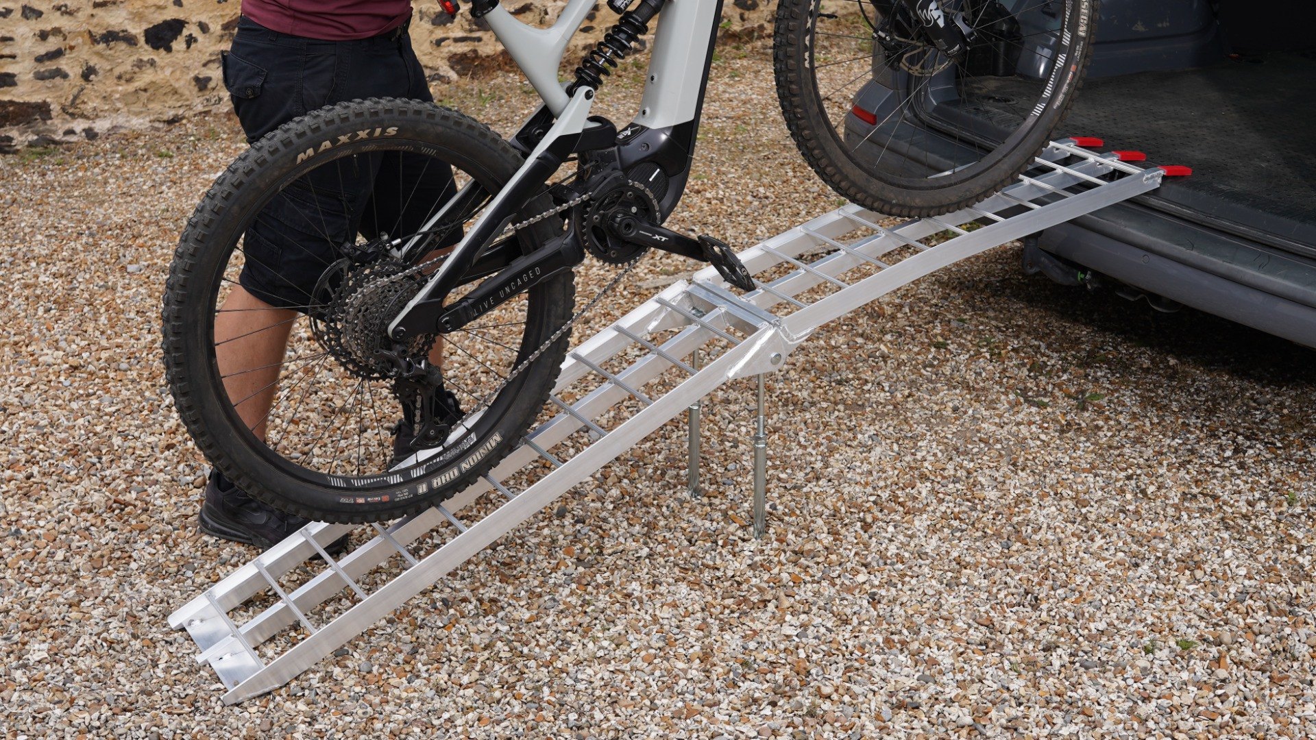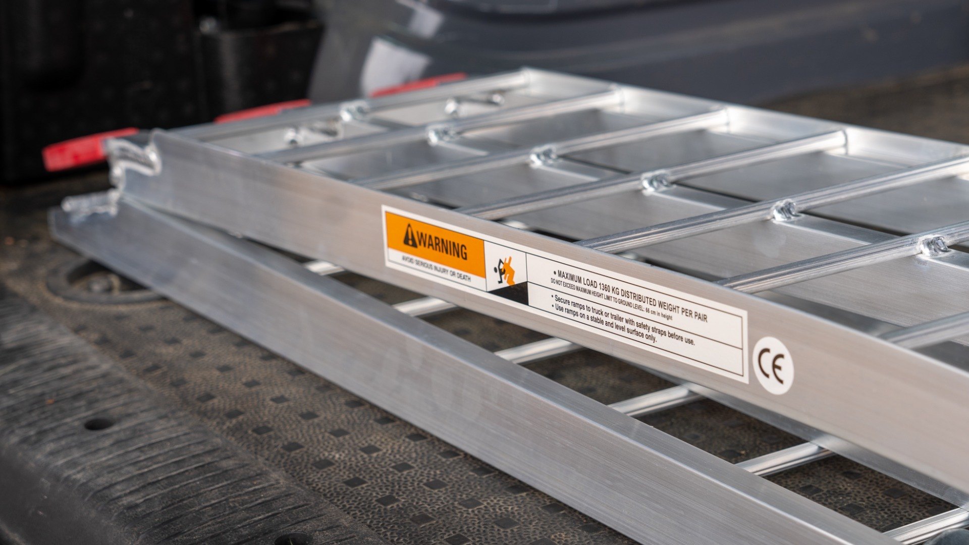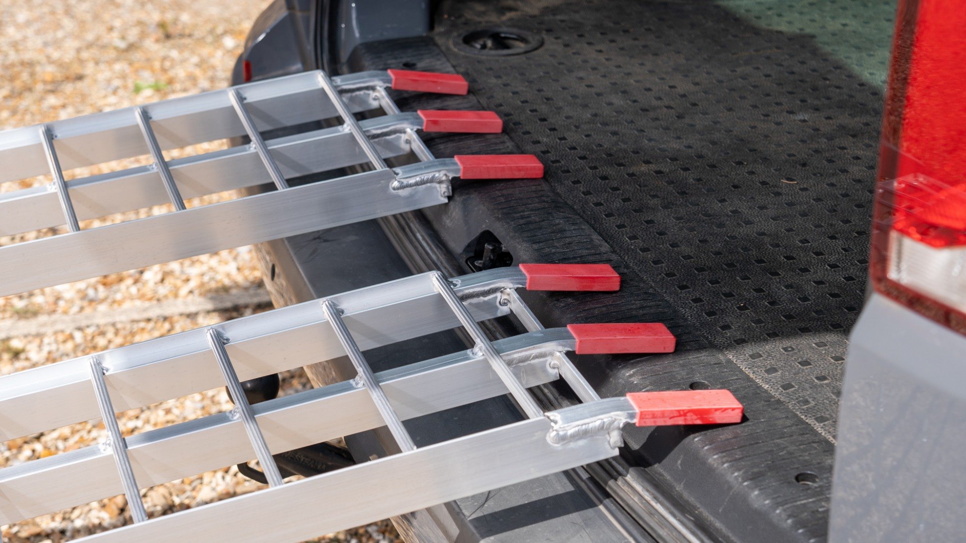 The ramps have a curved rest on connection which rests onto the vehicle. The foot of the ramp is cut at an angle to ensure the ramp stays securely on the ground. The ramps are provided with safety straps to secure the ramp to the vehicle. The ramp weight and angle also assists the ramp to stay in place.