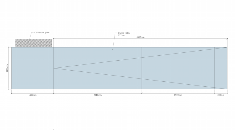 Connection to step/threshold: 220mm deep x 1500mm long; can be ordered cut to size if required. The necessary door measurements can be found here.
