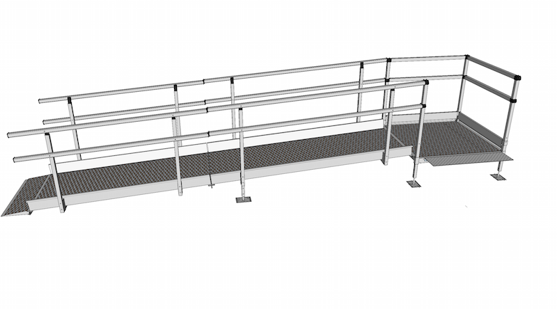 Modular Ramp Kit, 6000mm long, 1500mm wide, with double height handrails and mesh anti-slip surface.