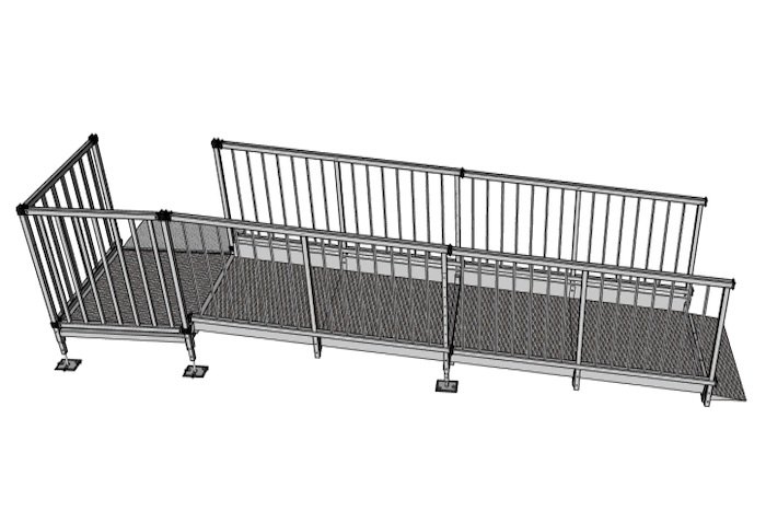 We have a dedicated modular team available to provide advice around modular wheelchair ramps. Please email pictures and measurements of your area to our team for recommendations or a custom quote if required. Examples of customisations include: adding steps to the side of the ramp, an additional platform, U-shaped handrails at the end of the ramp, contrast markers for those with impaired vision, longer ramp lengths, alternative ground connections and more.