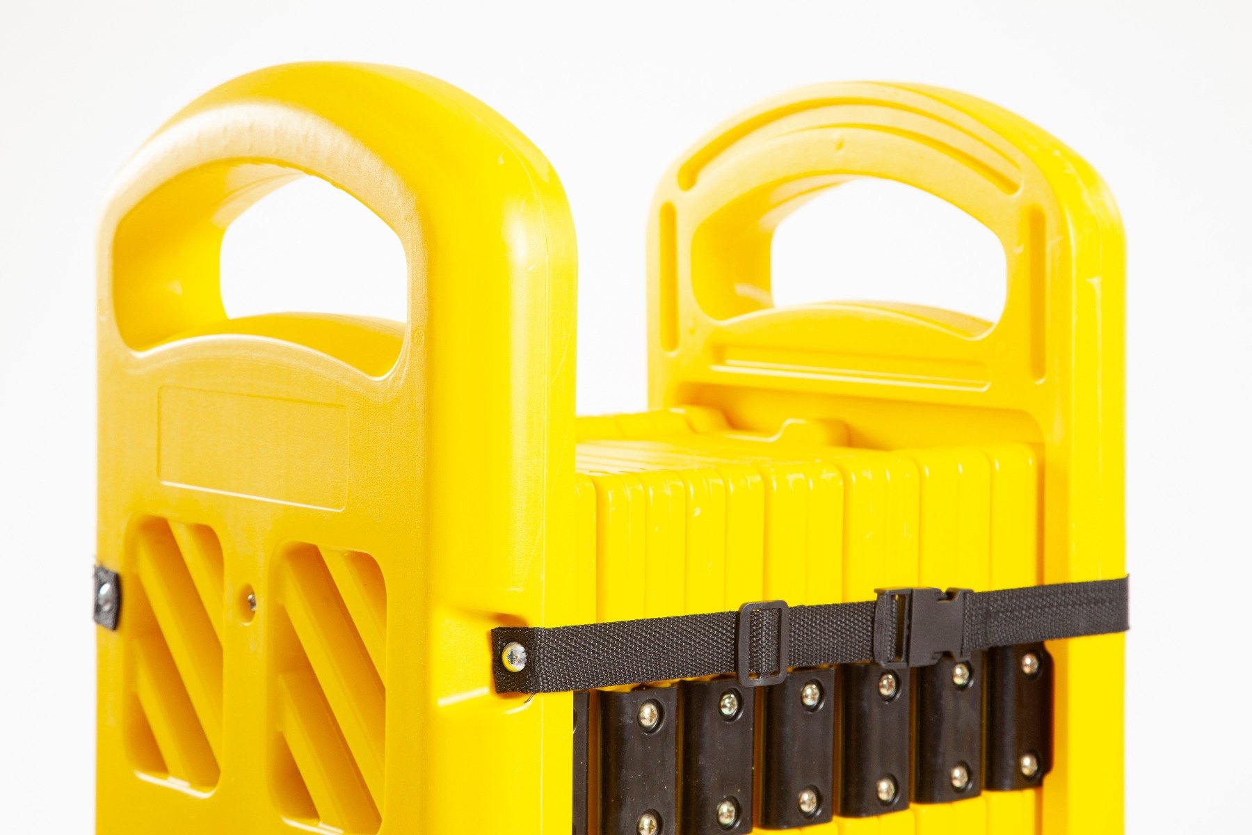 Lightweight and easy to carry, it can be adjusted to any length needed with a maximum length of 3850mm. To improve stability, the barrier can also be filled with water. The barrier is finished in a high-vis yellow, suitable for indoor and outdoor use, manufactured from durable, corrosion-resistant HDPE plastic.