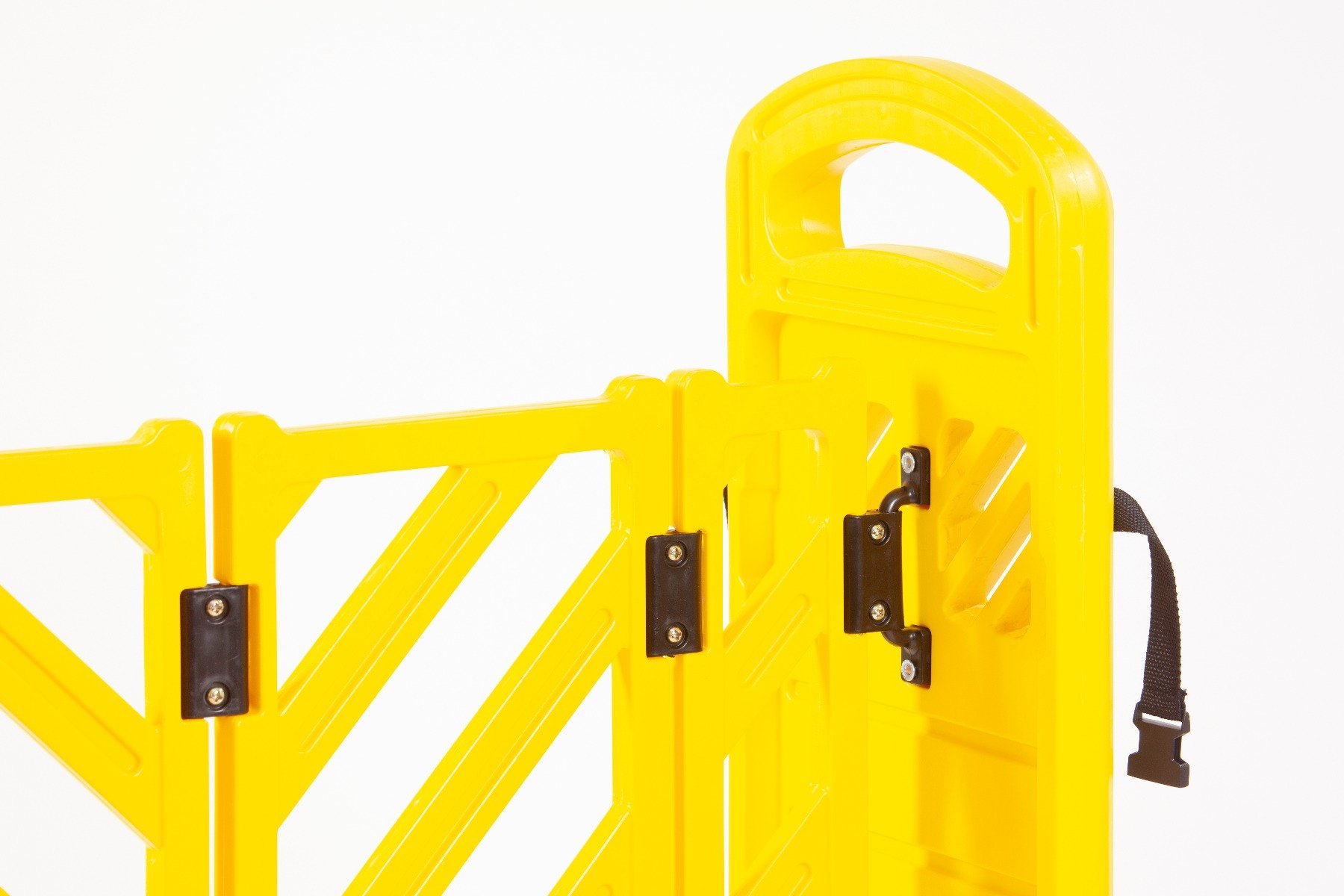 Expandable Mobile Barricade suitable for temporary construction work, equipment maintenance and hazard protection.