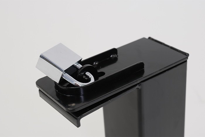Provided with padlock and three keys to secure the base closed when not in use