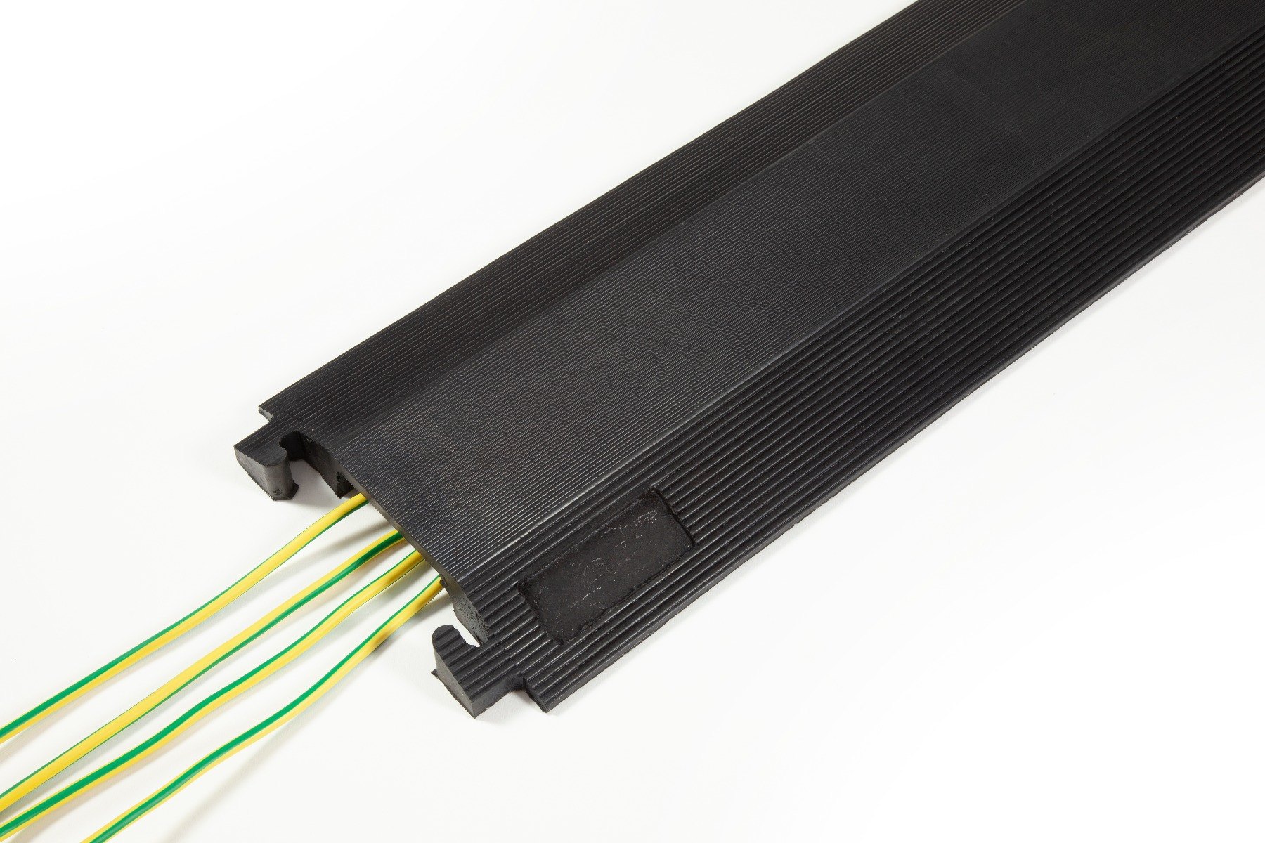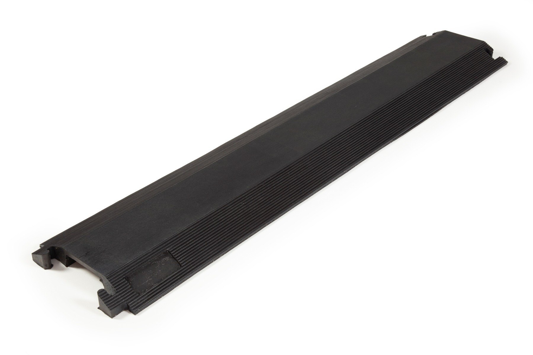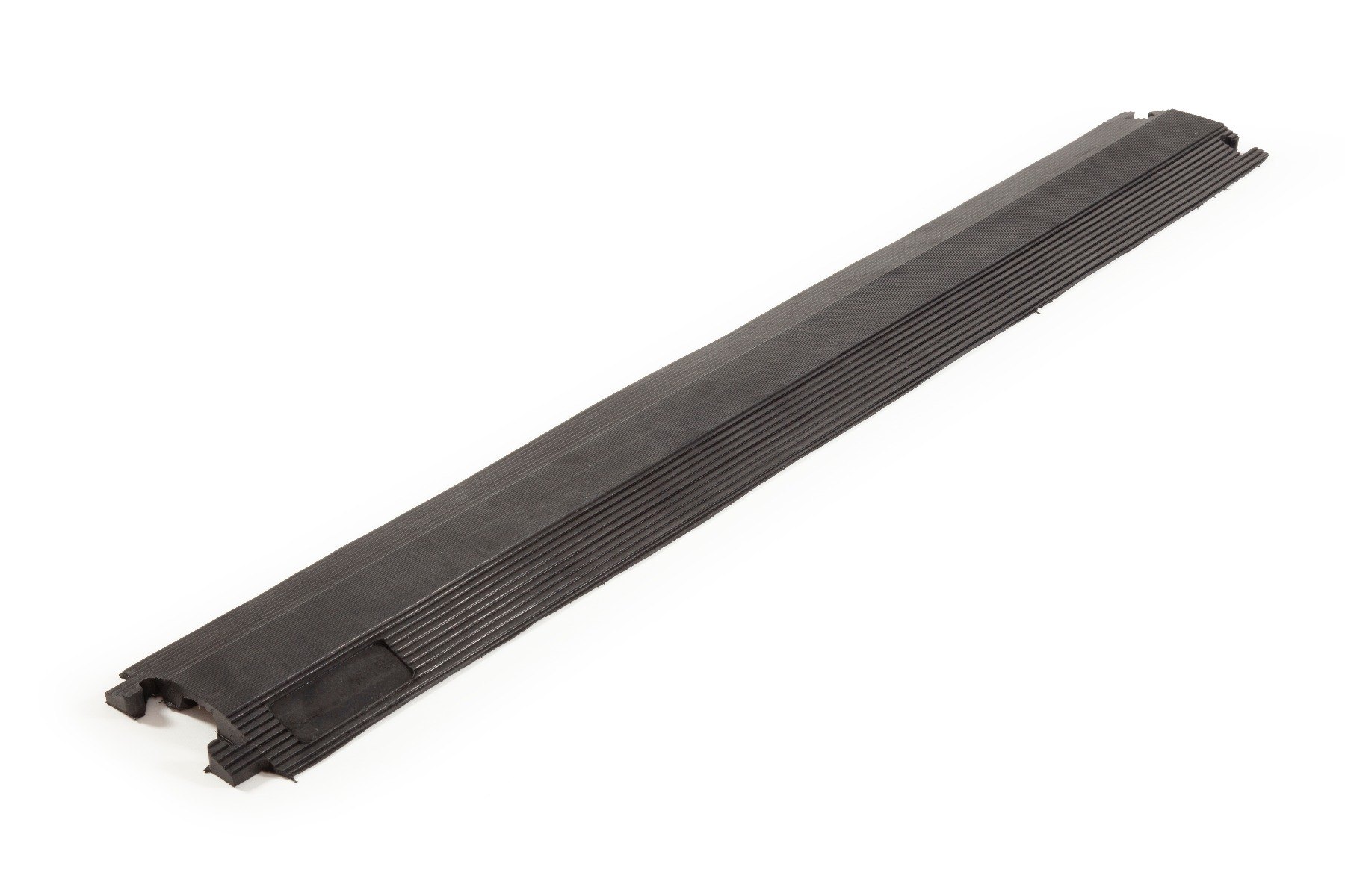 20mm high rubber cable cover with a 39mm x 13mm channel suitable for cables up to 12.7mm in diameter.