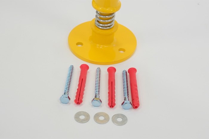 The Ramp Factory's fixed yellow Security Post with an integrated spring is perfect for alerting drivers to when they are approaching the end of the parking bay, in turn protecting surrounding structures including walls and fences and pedestrian traffic. The solid steel post can also be used as a guide, for example, in loading bays for HGVs when reversing. The posts are provided with fixings for easy installation.